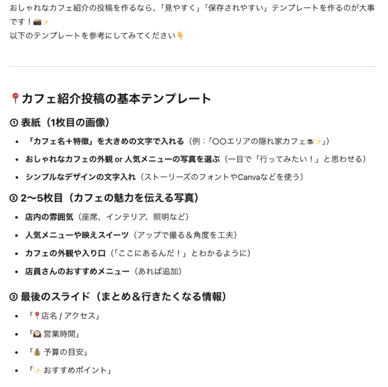 こんな感じで多くのユーザーに見られやすい投稿のアイデアを数秒で出力することができます。